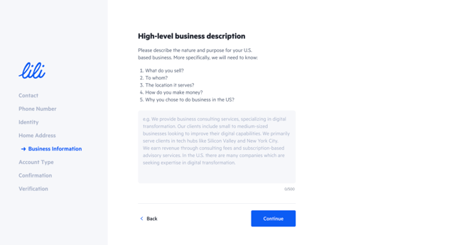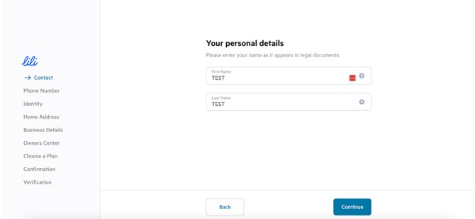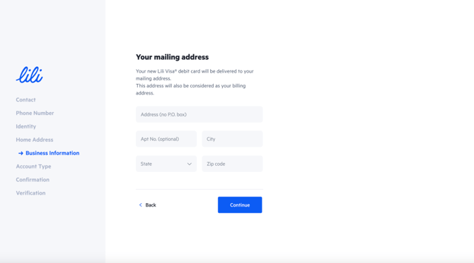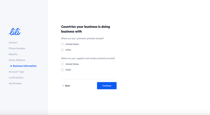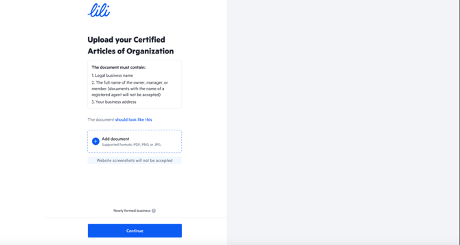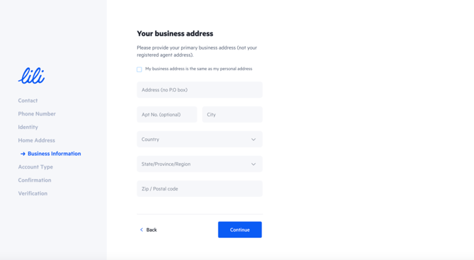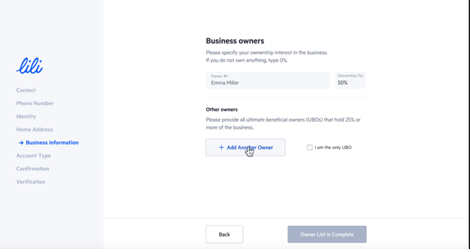 Business owners with multiple companies may open additional accounts once the first account is approved, directly through their Lili Dashboard.