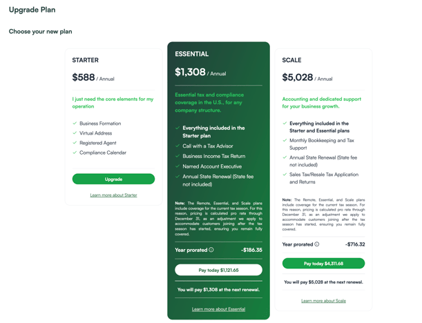 Clique no botão Atualizar para "Próximo Plano" ao lado do nome da sua empresa.